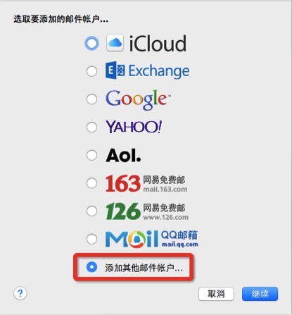 使用蘋果系統MAC電腦自帶客戶端設置阿里云郵箱POP3/IMAP協議的操作步驟: